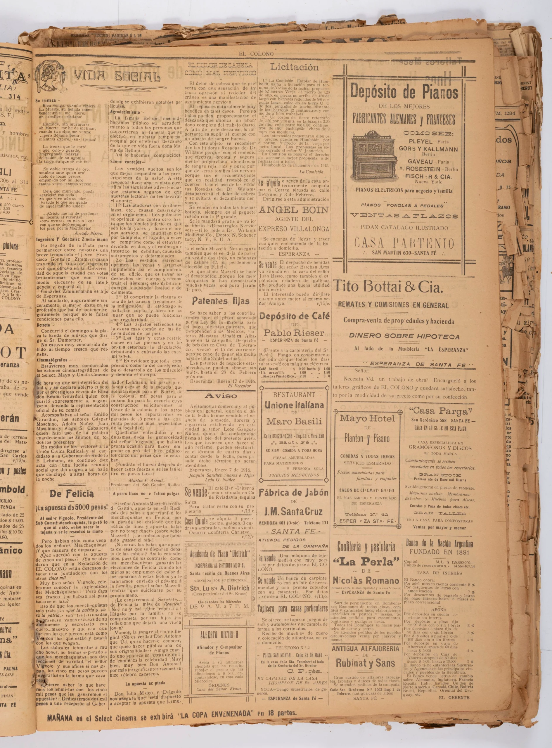 1916 – Miércoles 19 de enero