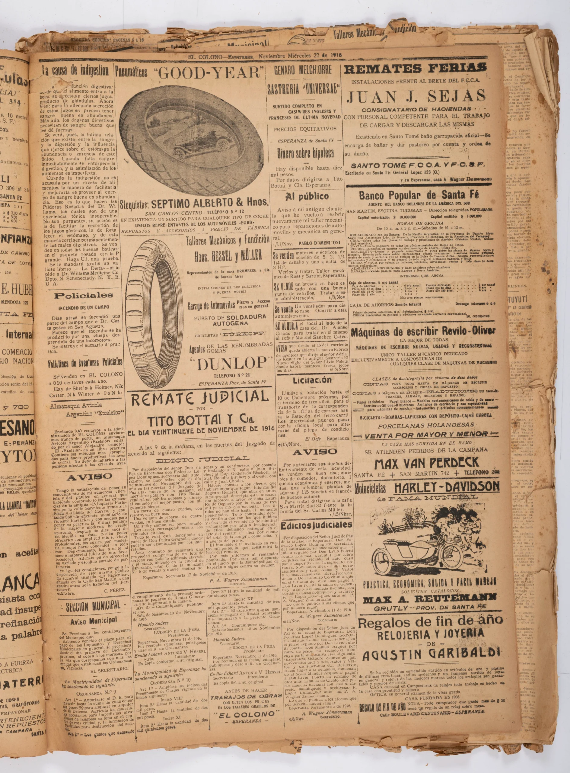 1916 – Miércoles 22 de noviembre