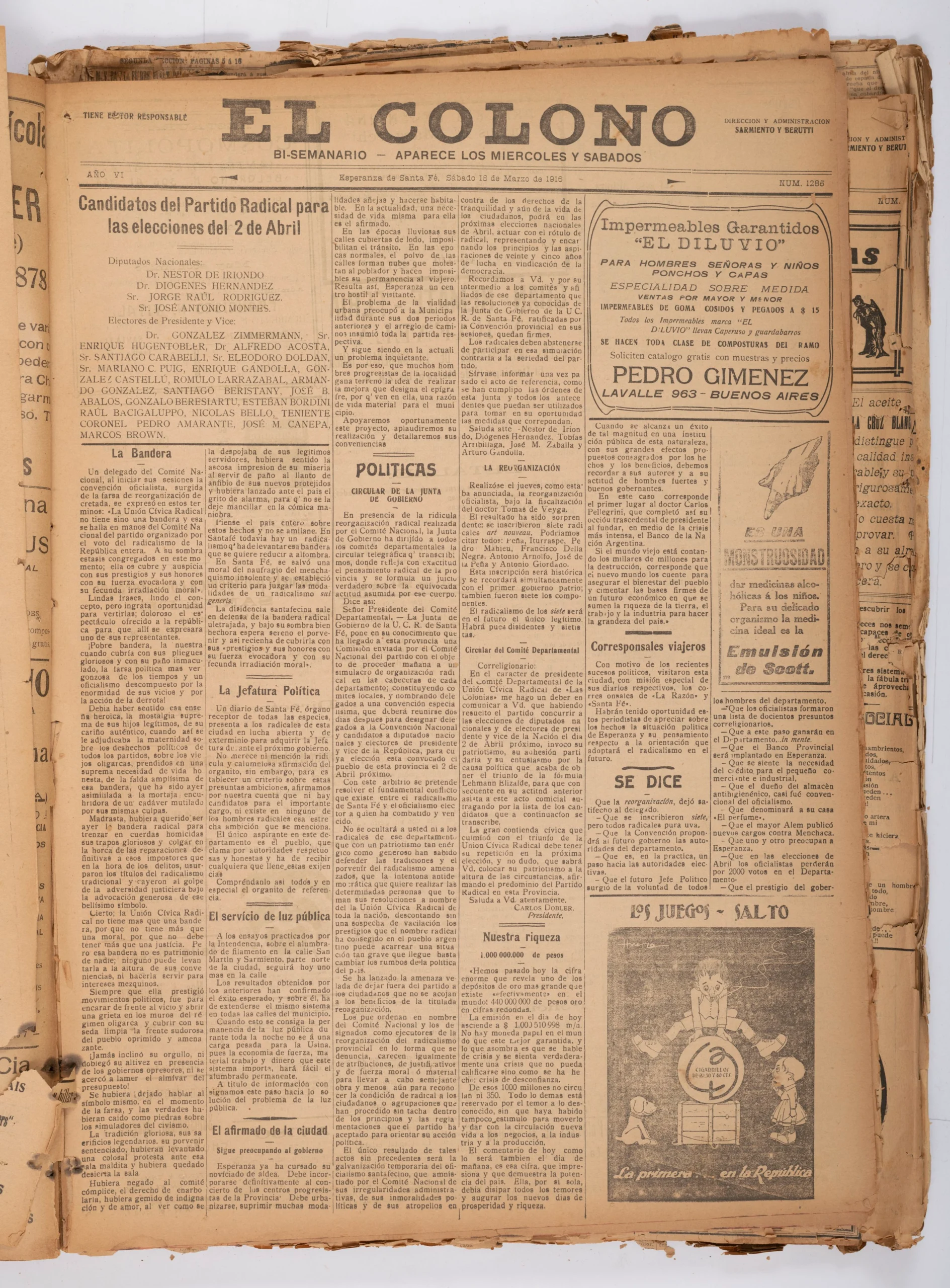 1916 – Sábado 18 de marzo