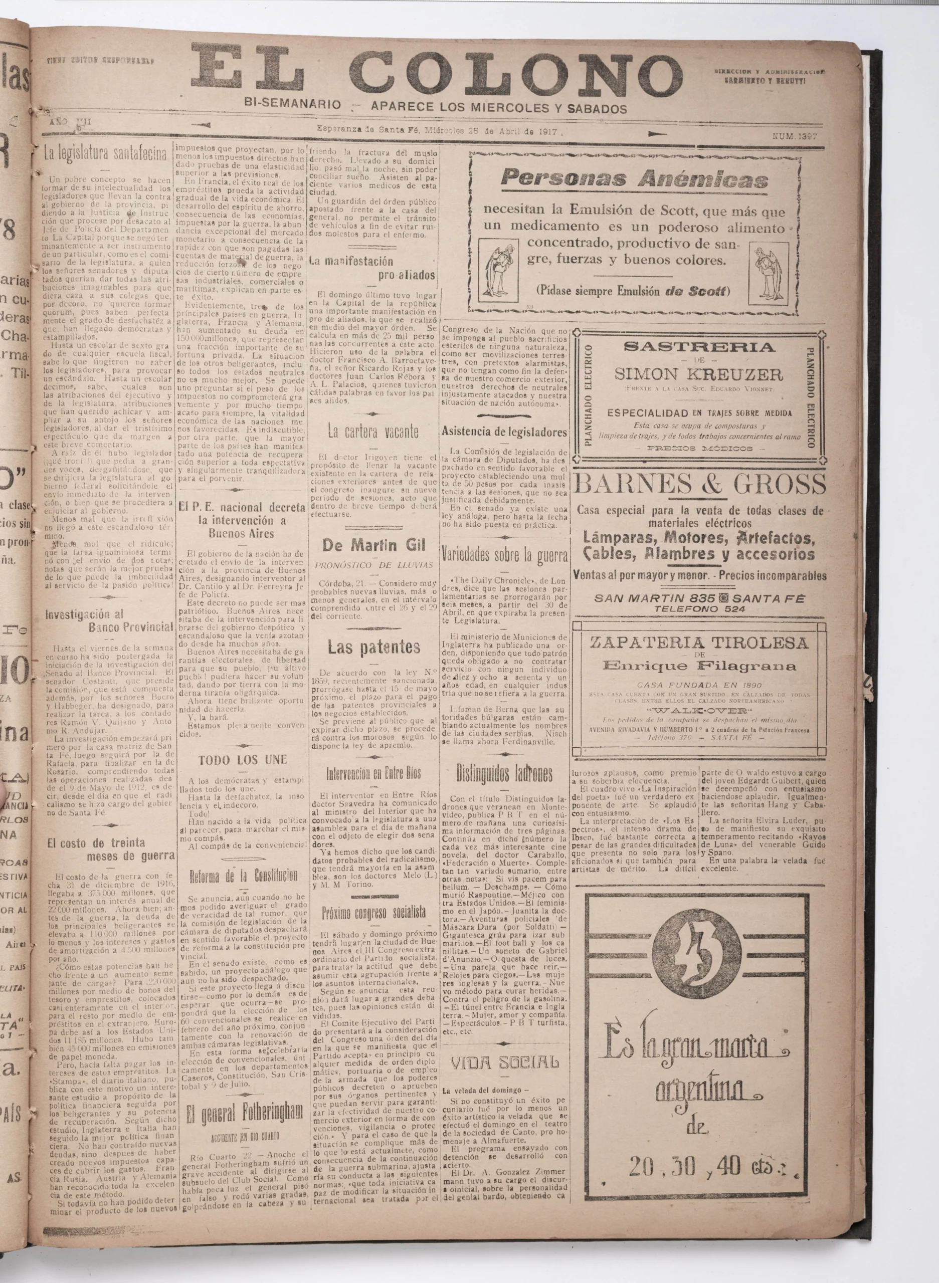 1917 – Miércoles 25 de abril