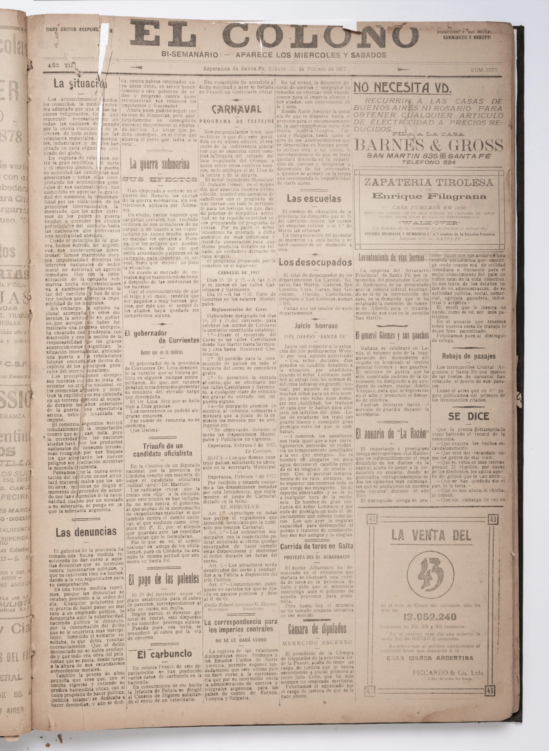 1917 – Sábado 10 de febrero