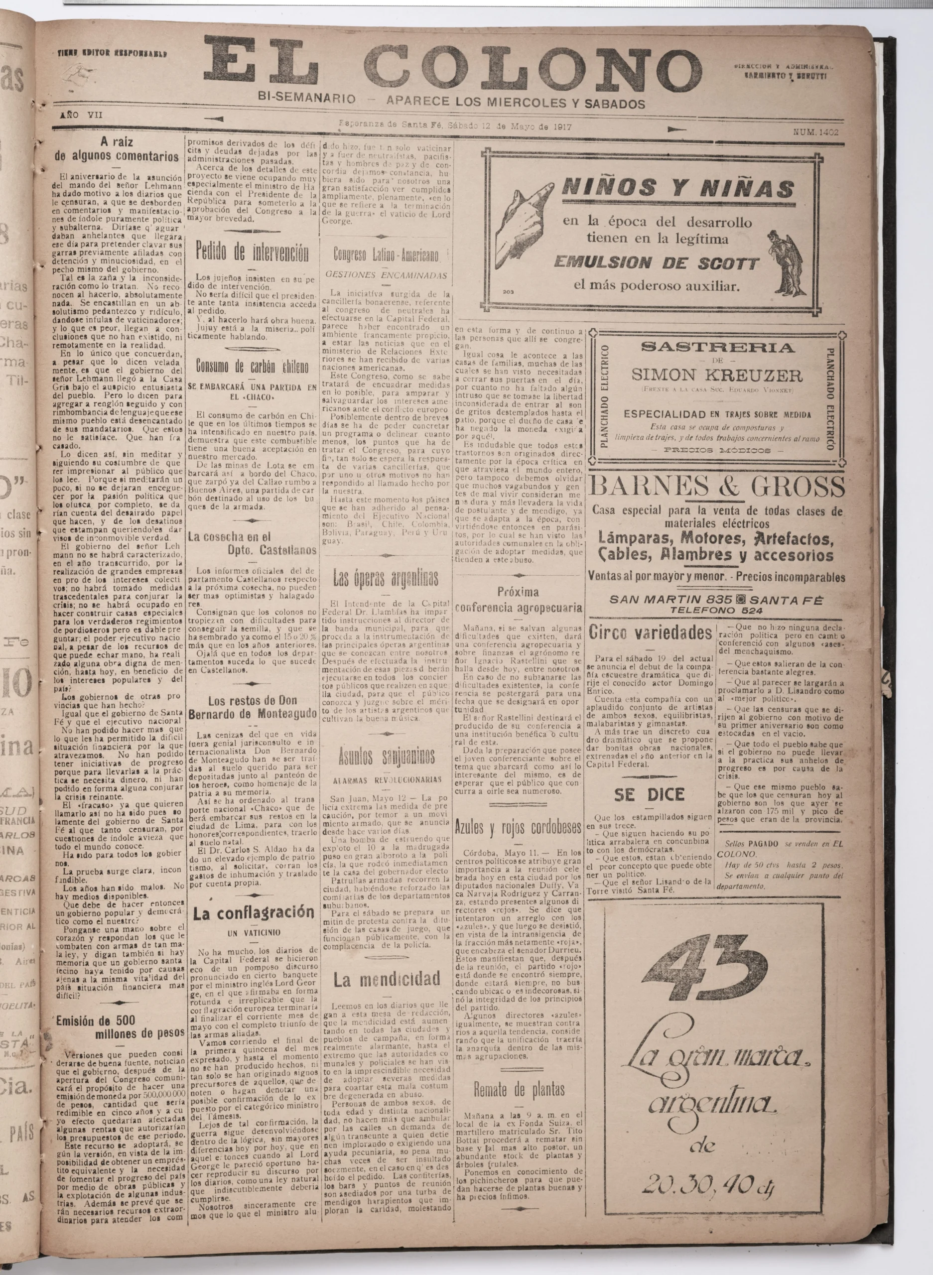 1917 – Sábado 12 de mayo