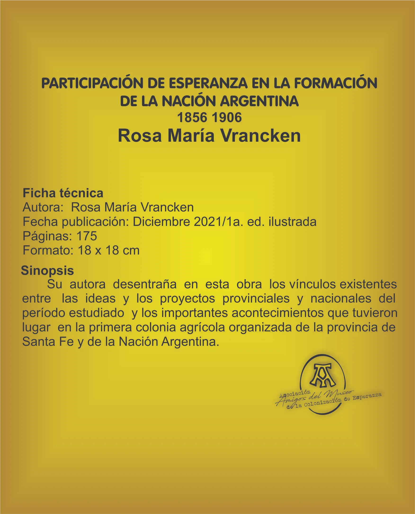 Su autora desentraña en esta obra los vínculos existentes entre las ideas y los proyectos provinciales y nacionales del período estudiado y los importantes acontecimientos que tuvieron lugar en la primera colonia agrícola organizada de la provincia de Santa Fe y de la Nación Argentina.
